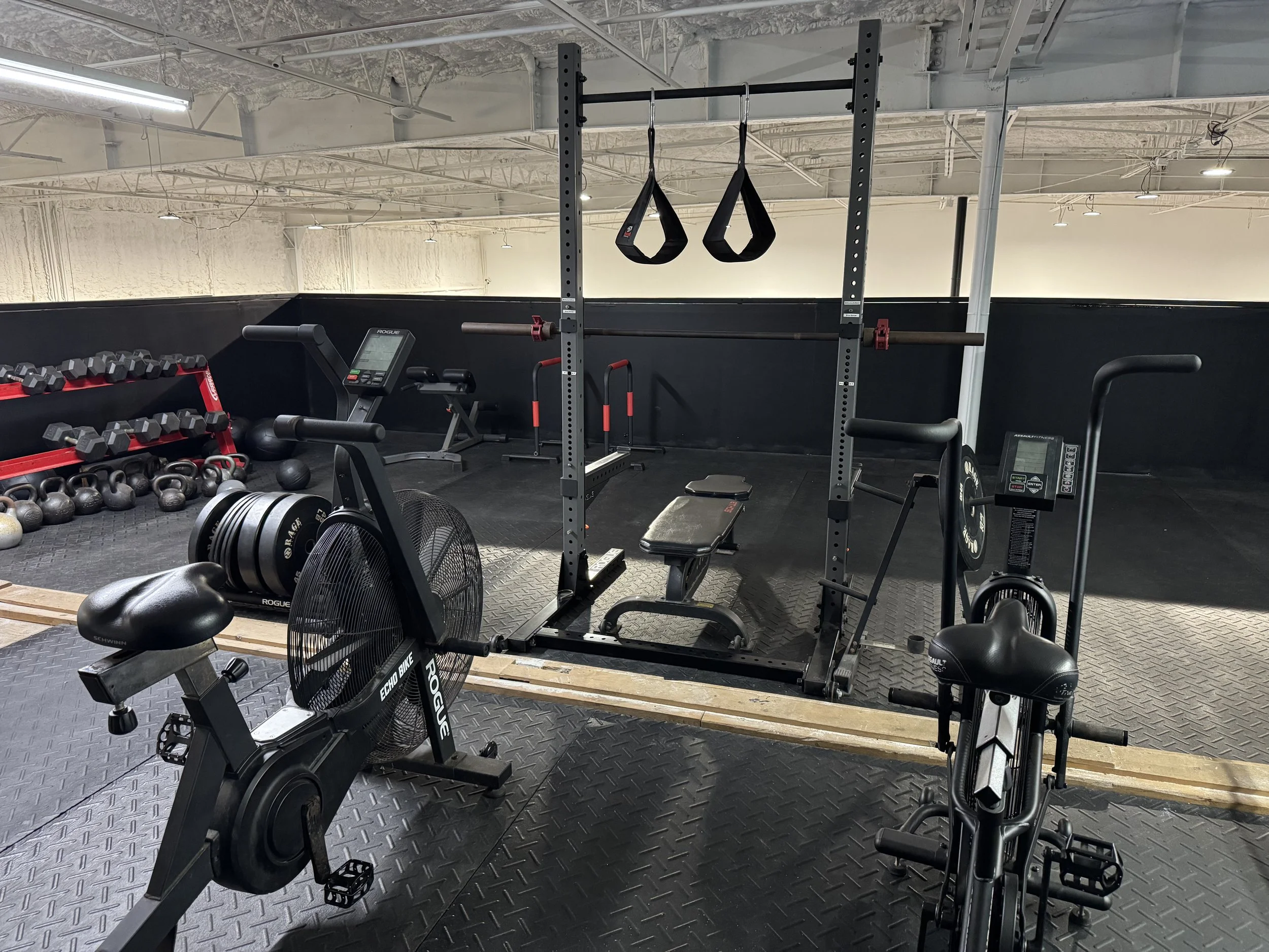 cardio area with rogue echo BIKES